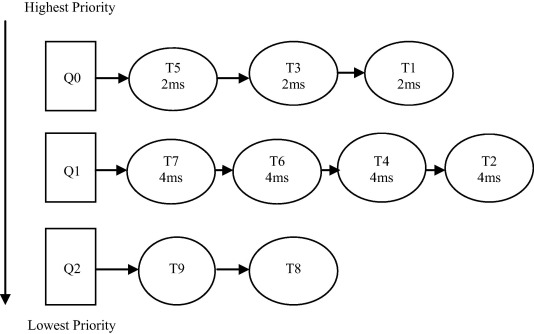 - 고정된 n개의 큐를 사용하며, 각 큐는 우선 순위 레벨 별로 구분된다.